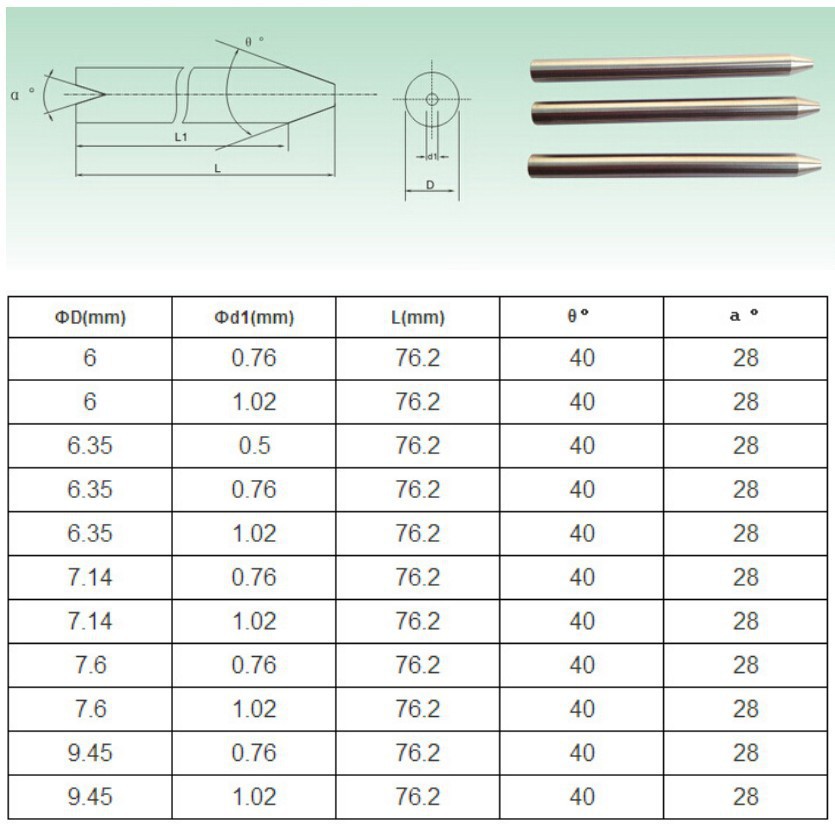 砂管的結構十分簡單,基本上由兩段構成,即錐狀人口和柱狀出口,因不同用途其尺寸略有差別,如圖所示。